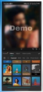For example, you get Bokeh and 4K. If you apply both here, like you applied it first. Okay? And here, adjust it to your liking. Basically, what Bokeh does is it blurs the background nicely. Okay? So the subject is highlighted better. So you can apply that, or you can use 4K. 4K directly improves the quality of your video. You can do that with the notch here. Okay? Look, it has improved the colors etc. and sharpened the video. Okay? So you can apply that. Then, go down and you will see the Enhance option. You can use that. You will find a lot more here. You will find Vivid etc. Vivid really brings out the colors. Okay? So, you can use just two or three of these filters here. First, apply the 4K filter and hit Done. It is applied. Then, add another filter here. For example, add Bokeh or Enhance. Add Vivid. You can choose from the best filters available here. Okay? As you can see, this bright color looks pretty nice. So, let’s leave it and hit ‘Done’. See, we’ve only applied these two filters here. Okay? One is the 4K filter and the other is the Background Light FX. Okay? So, you can see that the colors have improved a lot. Okay? So, that’s it. Now, next you can make adjustments here. We haven’t applied CC yet. We will apply CC. Okay? First, let’s adjust [Music]. For that, click on the video here. Then scroll down a little bit. You’ll see an ‘Adjust’ option right here. Click on [Music]. Okay? You’ll find a lot of tools here. Like Brightness and Brilliance, which you can do some really cool things with. First, increase the Brightness here a little bit. Okay? Like, we’re increasing it here a little bit. Then, decrease the Brilliance a little bit. This will create a soft light in your video. So, you can say that the light will increase and it will not hurt your eyes too much.
